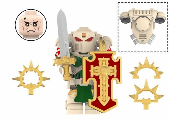 Fits Lego block bases. Highly detailed. Comes with halo, sword and shield.